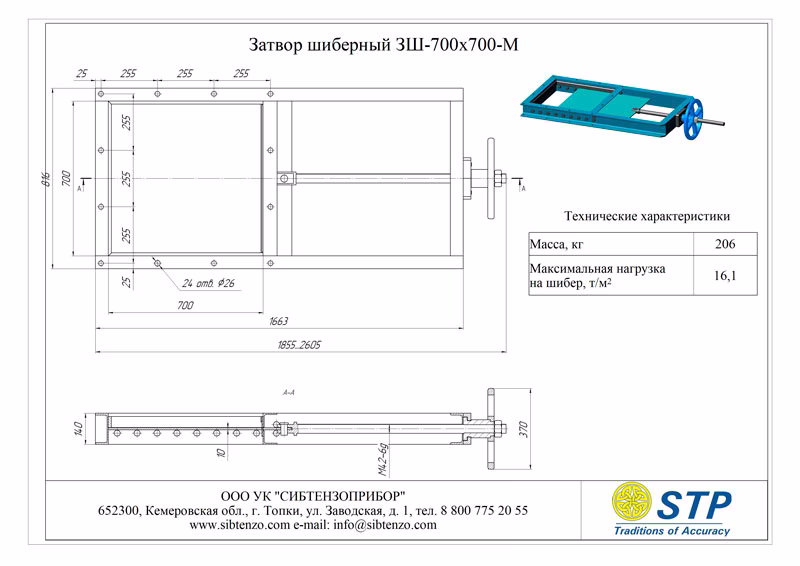 Купить затвор шиберный 3Ш-700х700-М из высокоуглеродистой стали вы можете в нашей компании «Сибтензоприбор»‎.
