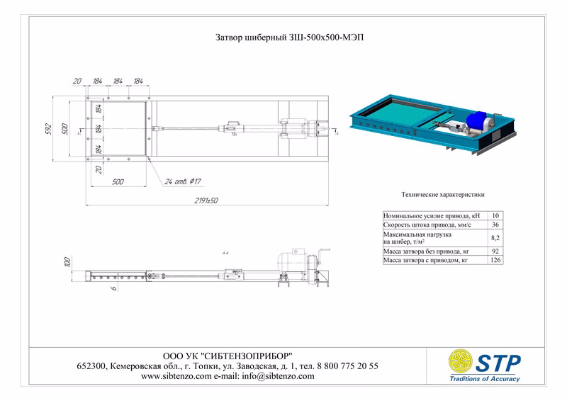 Затвор шиберный 3Ш-500х500-МЭП